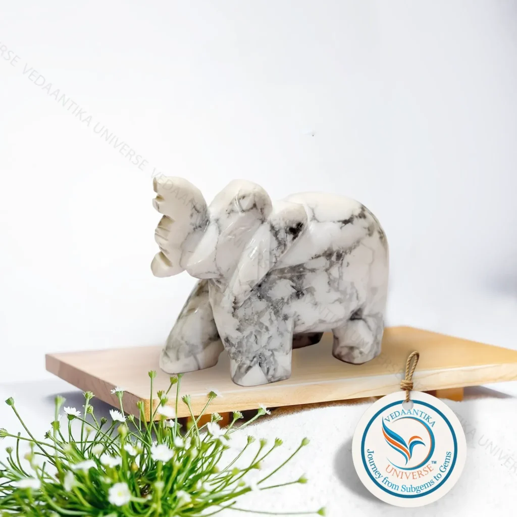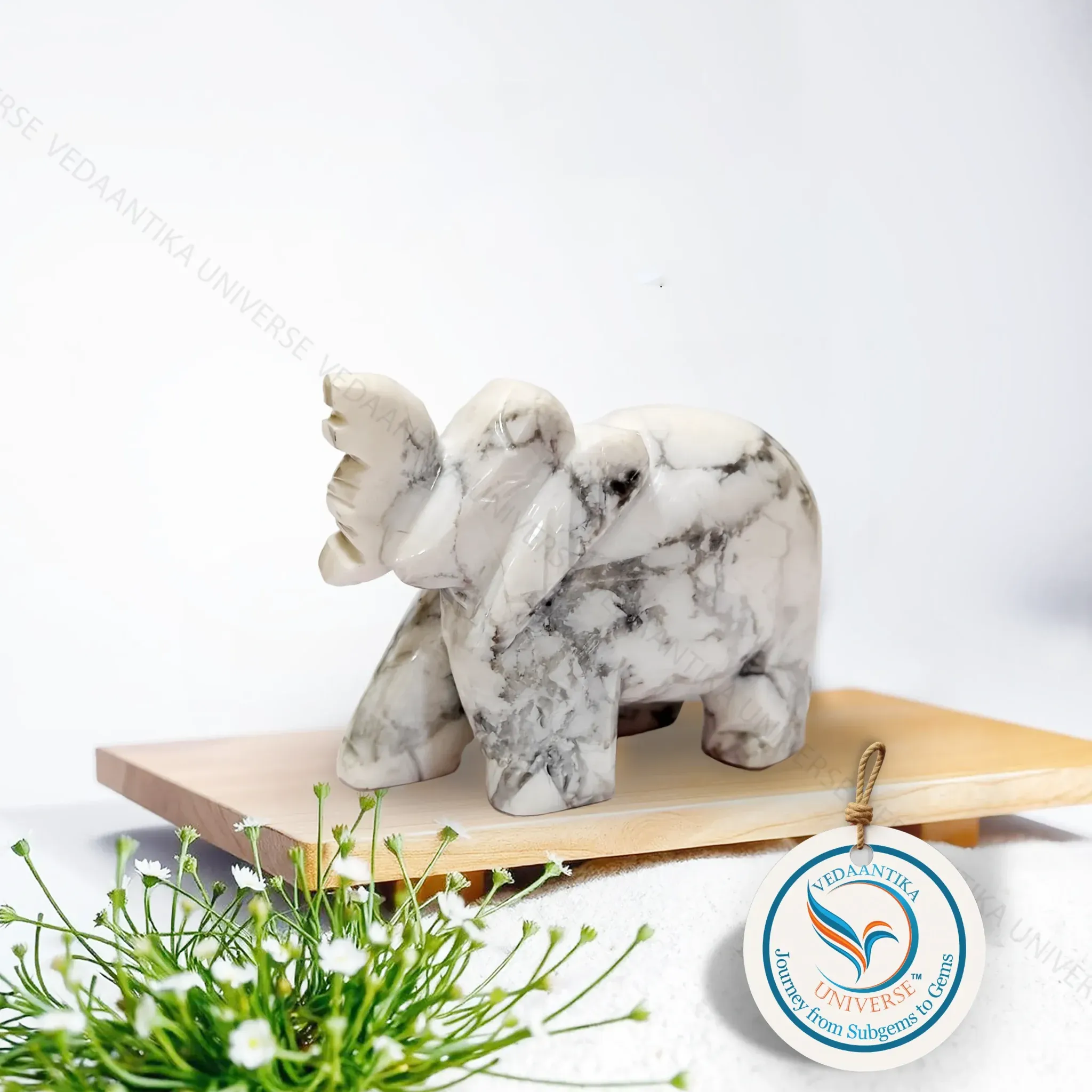 Howlite Elephant features a minimal white tone that suits modern and clean decorative setups.
