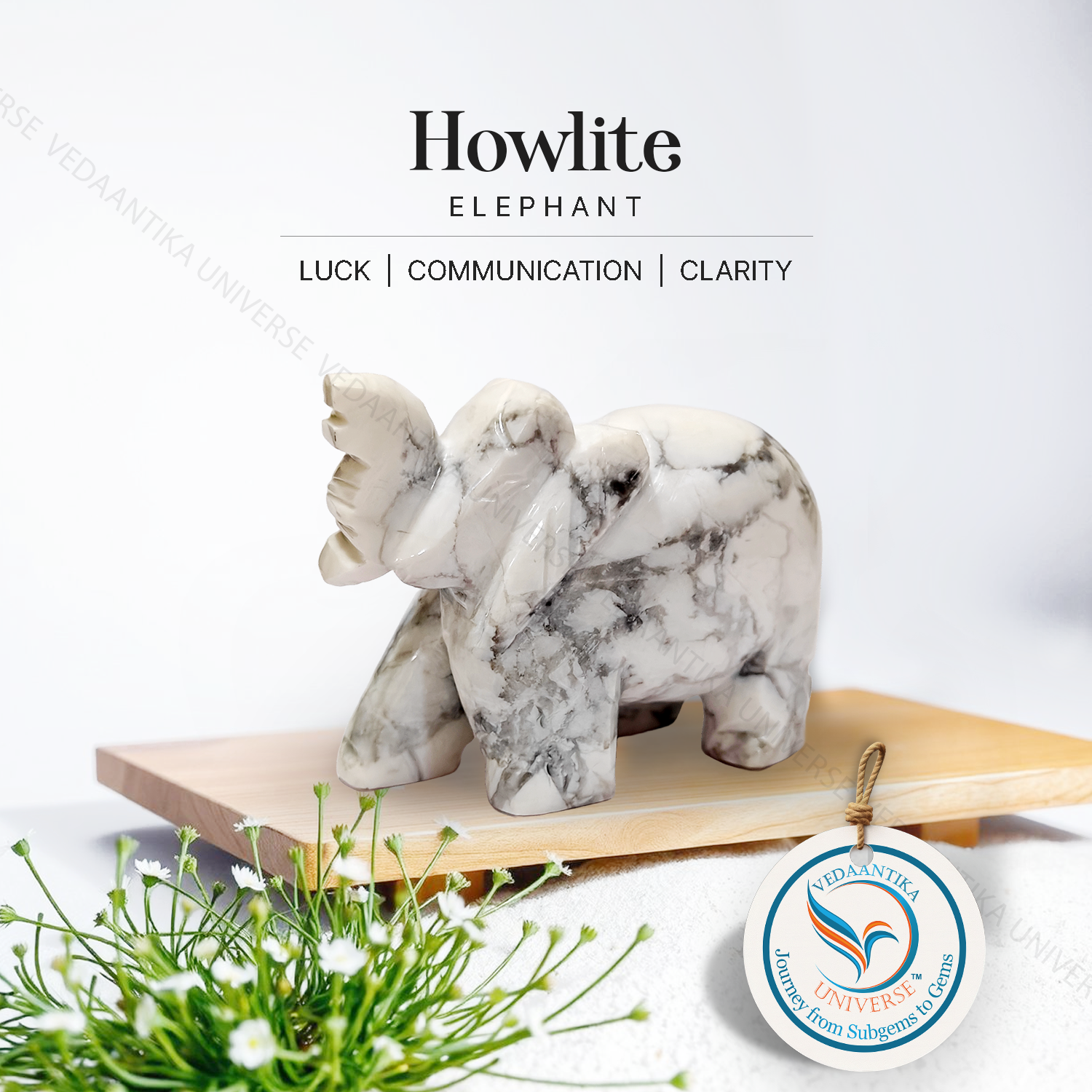 This AAA Grade natural Howlite Elephant is carved from genuine howlite stone, known for calmness, patience, and emotional control.