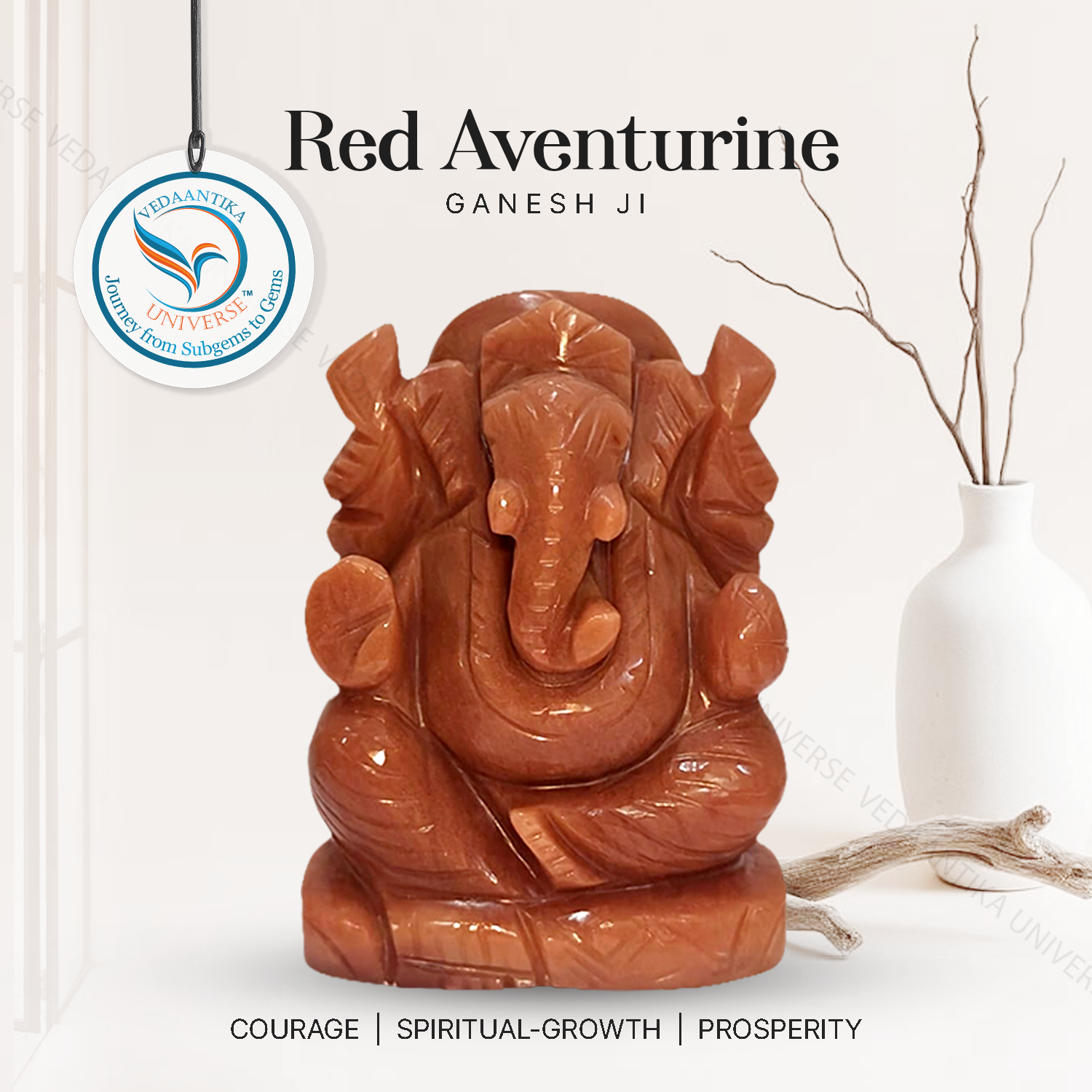 Red Aventurine boosts physical and emotional strength, while Lord Ganesha blesses stability and courage.