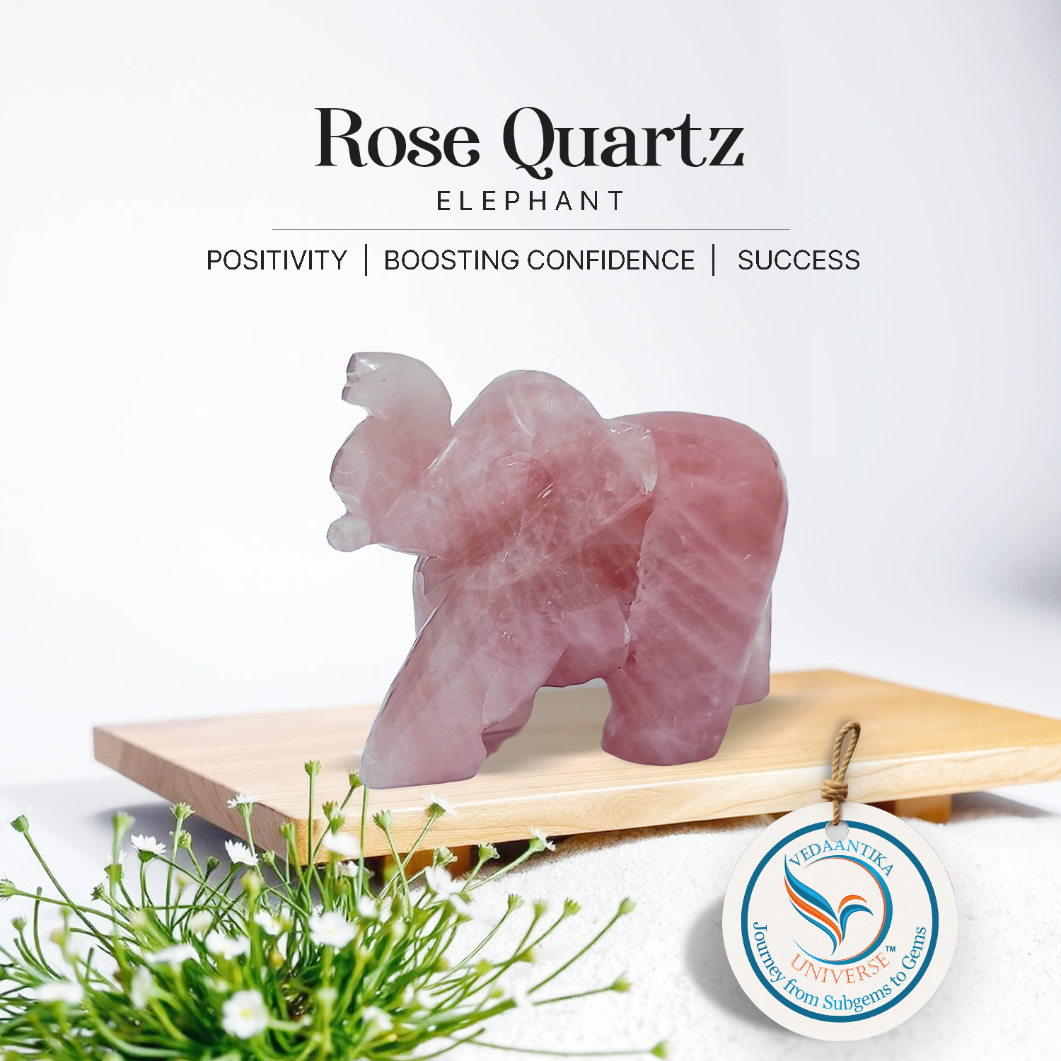 Rose Quartz is the Stone of Love, and the elephant form enhances harmony, peace, and emotional strength.