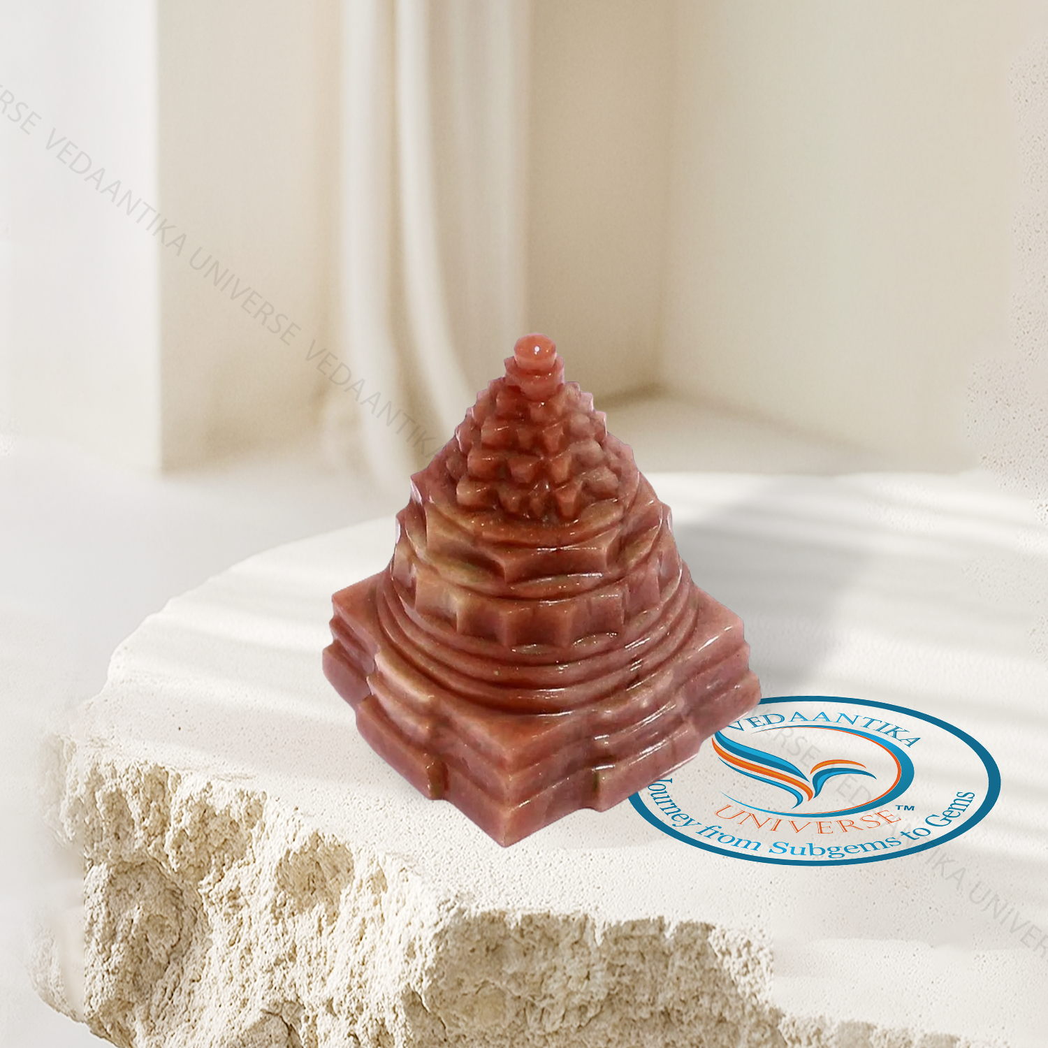 Sunstone represents vitality, leadership, and positivity. Combined with the Shree Yantra, it enhances confidence, motivation, and success.
